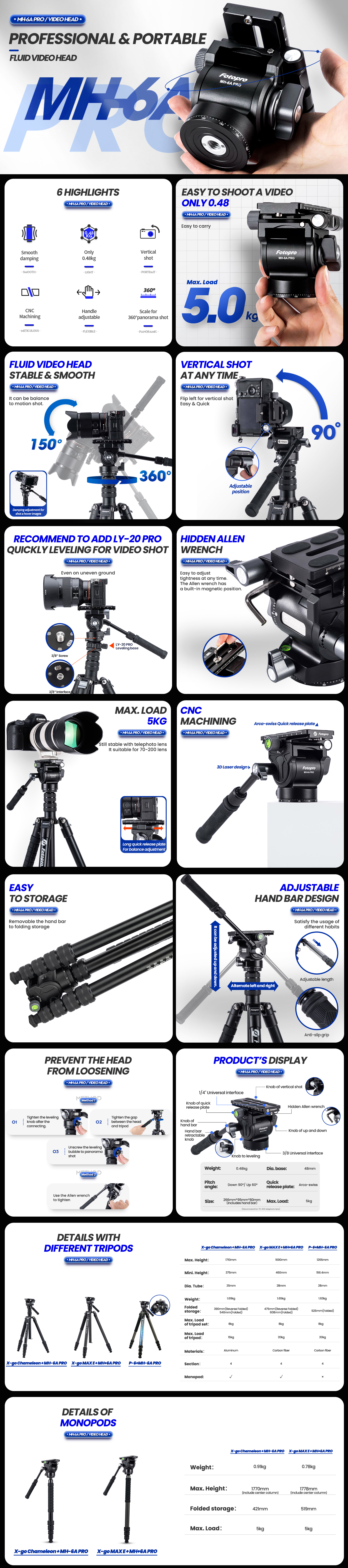 FLUID VIDEO HEAD MH-6A PRO fits with various tripods and monopods.